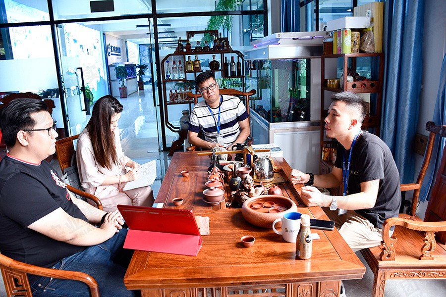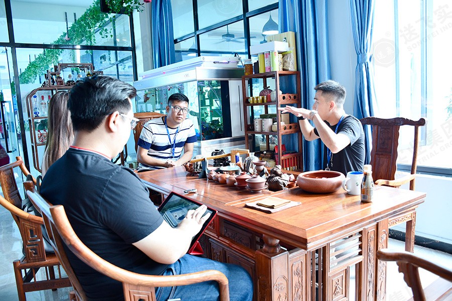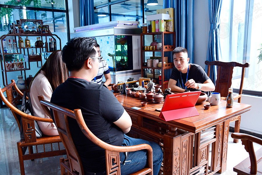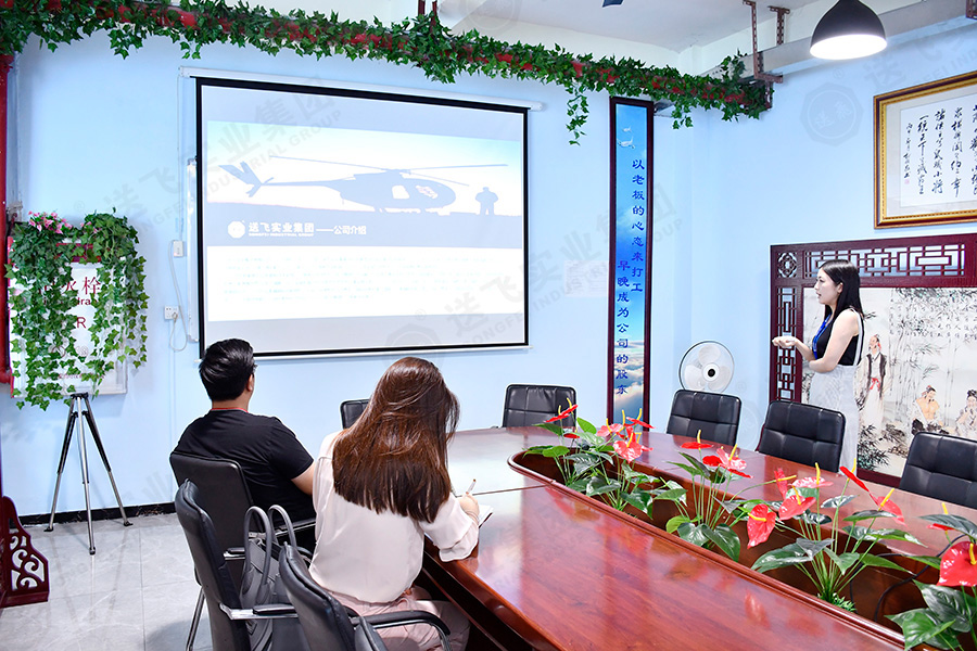 參觀結(jié)束后,在會議室,董事長助理為廣英科技園的領導就此次項目進行PPT講解。包括公司介紹、工程案例、設計詳解、施工流程。