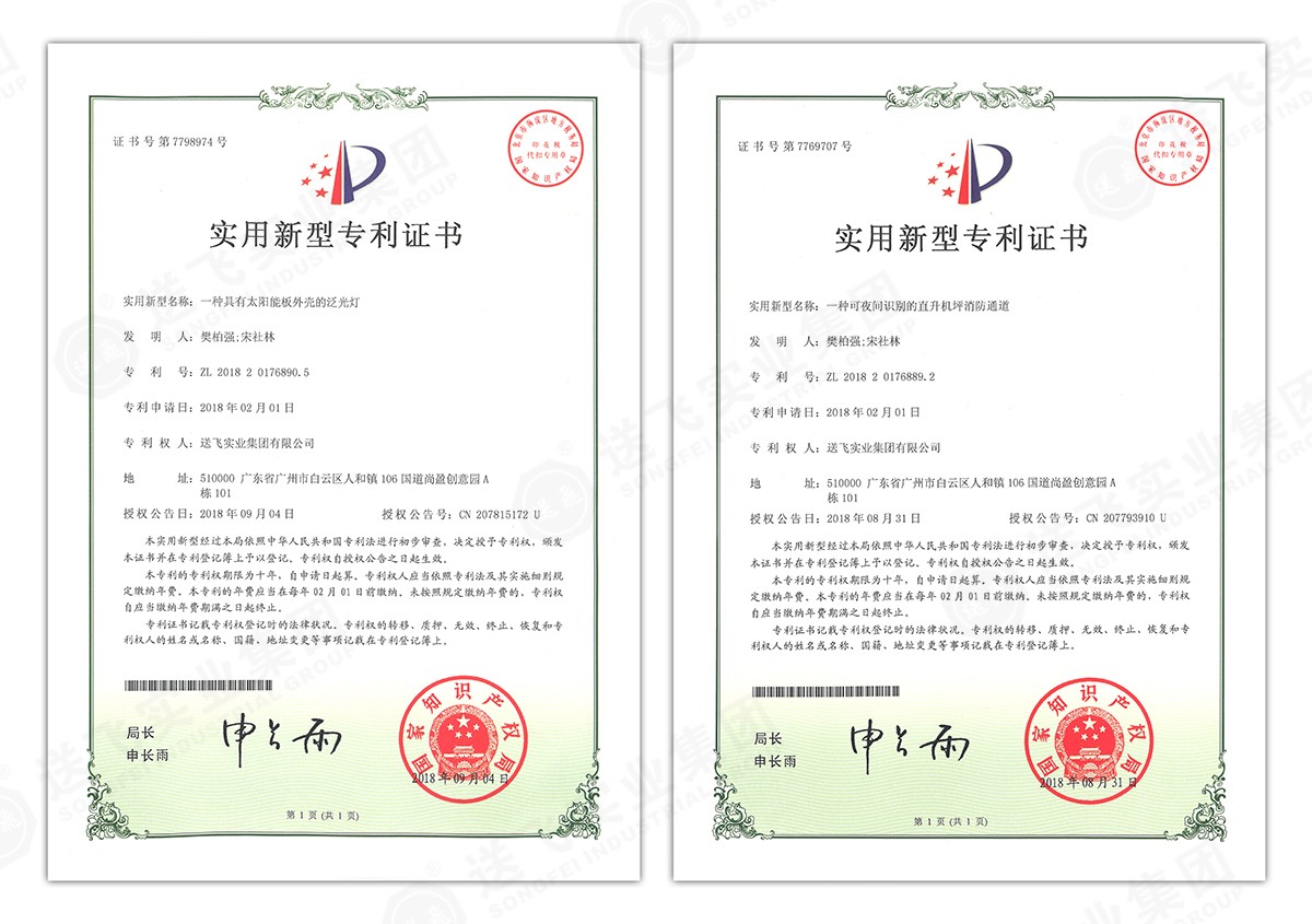 此次新下證專利有22個(gè),其中發(fā)明專利2個(gè),實(shí)用新型專利17個(gè),外觀設(shè)計(jì)專利3個(gè)。專利技術(shù)涵蓋航空障礙燈、直升機(jī)坪等多項(xiàng)產(chǎn)品和業(yè)務(wù)。目前,送飛成功申請(qǐng)專利逾百項(xiàng),填補(bǔ)了行業(yè)多項(xiàng)技術(shù)空白。